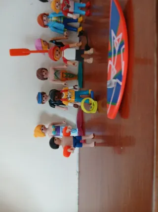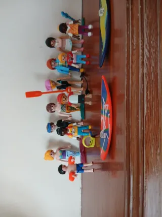 Conjunto de figuras PlayMovil con temática de verano y actividades acuáticas. - Incluye figuras con accesorios de surf y remo. - Figuras con trajes de baño y flotadores.
