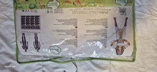 Conjunto de disfraz inspirado en la vestimenta egipcia. - Túnica blanca con cuello dorado y detalles. - Cinturón con adornos dorados y azules. - Brazaletes a juego. Turbante de cabeza Talla de 3-4 años