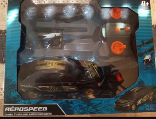 Set de coche y helicóptero teledirigido. - Helicóptero con diseño de policía. - Coche con detalles deportivos y número 35. - Mando a distancia incluido.