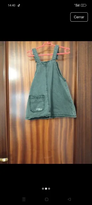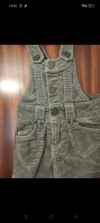Peto falda de pana para niña. - Talla 3 años. - Color marron - Cierre de botones en los tirantes y laterales. - Bolsillos delanteros.
