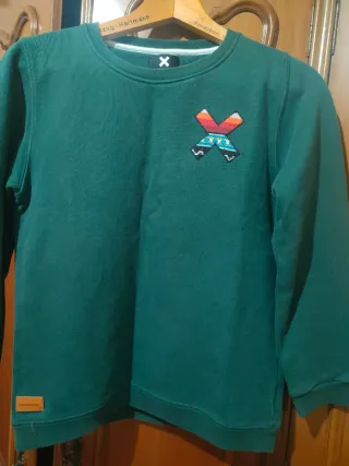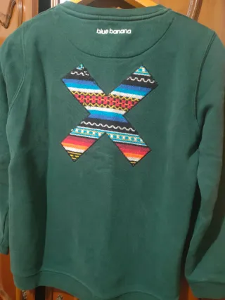 Sudadera de la marca blue Banana. - Color verde oscuro. - Diseño de X con estampado geométrico en la espalda. - Cuello redondo.