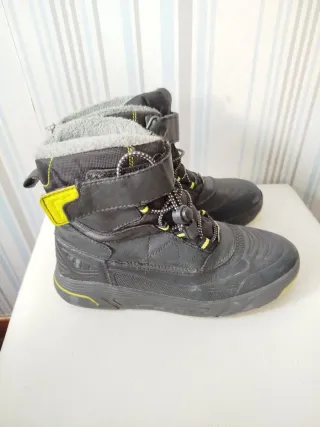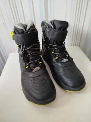 Botas de nieve infantiles en color negro, talla 34. Perfectas para mantener los pies calientes y secos en climas fríos. - Cierre con velcro y cordones. - Interior forrado de pelo sintético. - Suela de goma antideslizante.