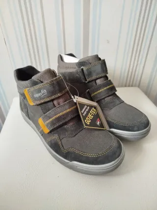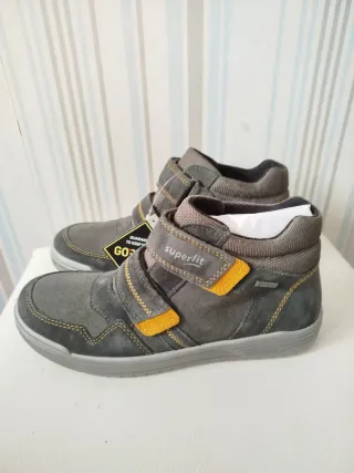 Botas de niño de la marca Superfit, ideales para el frío y la lluvia gracias a su tecnología Gore-Tex. Color gris y cierre de velcro. Sin estrenar con etiqueta. Precio original: 89,95€ - Material exterior: ante y textil. - Forro: textil. - Suela de goma. - Cierre de velcro. - Tecnología Gore-Tex.