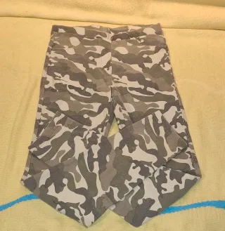 Conjunto de tres leggings para niña. - Legging de camuflaje. - Legging gris con detalle de lentejuelas. - Legging negro con estampado de unicornio. C2