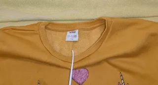 Sudadera de manga larga en color amarillo mostaza. Presenta un diseño divertido con dos unicornios y un corazón. - Estampado de unicornios y corazón. - Mensaje Less Mondays, More Unicorns. - Detalle de parche Girls Power Team en la parte inferior. C2