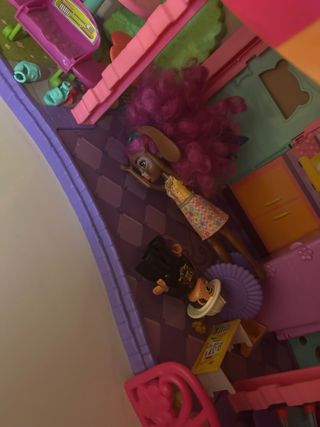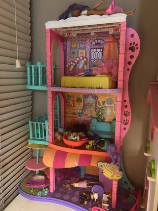 Casa de muñecas Enchantimals con varios niveles y accesorios. - Incluye 5 muñecas. - Viene con un accesorios Mide aproximadamente 71 cm de altura. Cuenta con 6 zonas de juego diferentes. Incluye más de 20 piezas de accesorios y mobiliario. Viene con 5 muñecas y sus mascotas