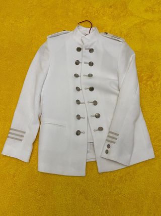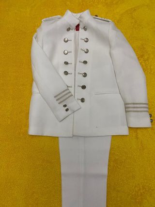 Conjunto de lino blanco para primera comunión. De la marca Club Cadete, Talla 10. en buenas condiciones, recien salido de la tintoreria - Chaqueta estilo militar con botones plateados. - Pantalón a juego. - Talla 10.