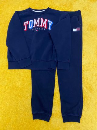 Conjunto de chándal infantil de Tommy Hilfiger. En buen estado - Sudadera azul marino con logo. - Pantalón a juego. - Talla 152.
