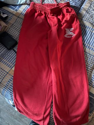 Pantalones de chándal de color rojo, ideales para uniforme escolar. - Cintura elástica con cordón. - Talla 6. 8€ cada uno 15 € los dos