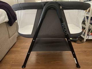 Minicuna de la marca Asalvo, modelo Nidus. Se encuentra en muy buen estado. - Estructura plegable. - Laterales de malla transpirable. - Incluye colchón. Prácticamente nueva porque se ha usado 6 meses y ya queda pequeña