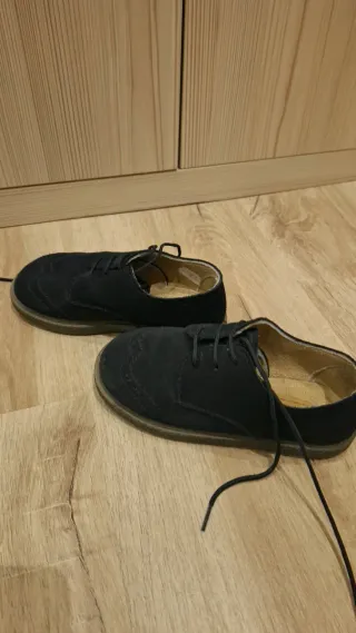Zapatos de vestir para niño. - Material de ante. - Cierre con cordones. - Diseño clásico con picado. - Marca Vul-peques - Usados dos veces