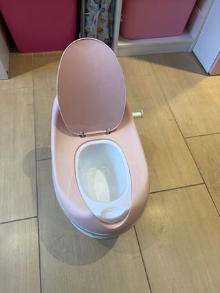 Orinal o WC infantil de la marca Jane en color rosa. Incluye un detalle sonoro. - Diseño ergonómico. - Base estable. Se desmonta la base rosa para lavarla, es blandita. Muy poco uso, en caja original