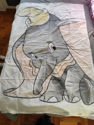 Funda nórdica para cuna con un adorable diseño de Dumbo. - Ilustración a todo color de Dumbo. - Tejido suave y transpirable. - Viene con sábana bajera y funda de almohada.