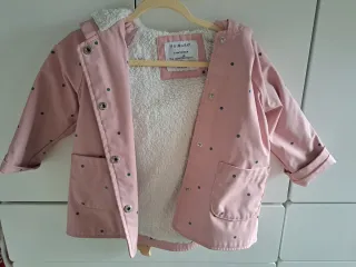 Abrigo infantil de Primark en color rosa con lunares grises. Perfecto para mantener a los peques abrigados. - Diseño con capucha. - Forro interior de borreguito. - Cierre de botones a presión. - Dos bolsillos delanteros.