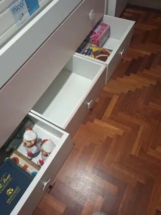 Cama nido para niña, en excelente estado y con muy poco uso. - Color blanco y rosa. - Diseño moderno y funcional.