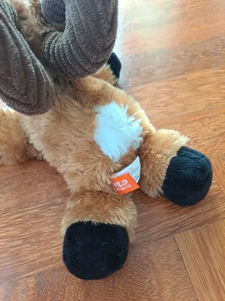 Adorable peluche de cabra de tamaño pequeño. Ideal para coleccionar o regalar. Comprada en la tienda de Marcelle - Material suave y agradable al tacto. - Diseño tierno con cuernos. - Color marrón y blanco.