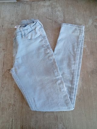 Vaquero de color claro para niña, talla 10-11 años. - Corte ajustado. Elastico - Cintura elástica. - Bolsillos delanteros y traseros. 1 solo uso.
