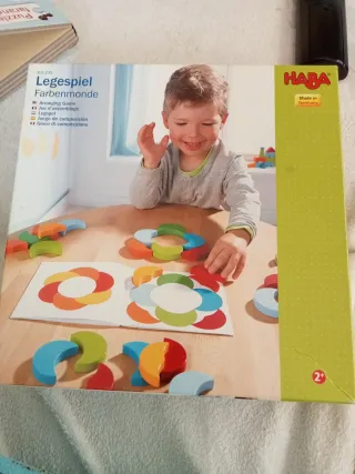 Juego educativo HABA Legespiel Farbenmonde. - Fomenta la creatividad y la composición. - Piezas de colores para crear patrones. - Fabricado en Alemania.