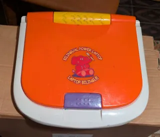 Ordenador educativo bilingüe para niños, con actividades en español e inglés. Diseñado para el aprendizaje interactivo. - Teclado con letras y números. - Botones de actividad y repetición. Funciona correctamente. Falta la tapa de las pilas (ver foto) .
