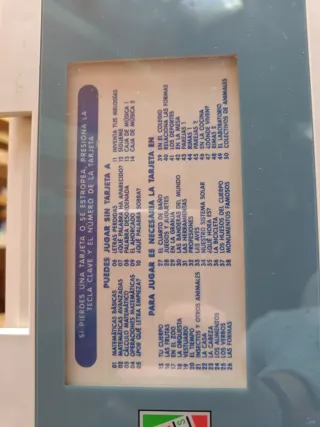 Ordenador educativo CEFA Notebook Junior. - Incluye pantalla y teclado. - Diseño portátil y compacto. - Divertido para aprender. - Incluye 100 tarjetas para aprender jugando. - Se puede jugar algunas cosas sin tarjeta. - Las tarjetas son dobles, tienen dos juegos cada una. FUNCIONA ESTA COMPROBADO. Si lo deseas, INCLUYE PILAS NECESARIAS. (+10.00€) 2 paquetes de 2 pilas total 4 pilas 5€/paquete Precio negociable. Envios y entrega en mano. Hago Lotes con descuento si compras varias cosas de mi perfil.
