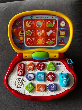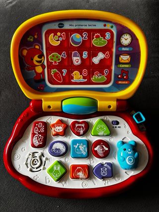 Ordenador infantil de VTech con el modelo Mis Primeras Teclas. Ideal para el aprendizaje temprano. - Diseñado con colores vivos y alegres. - Incluye diferentes botones con formas y números. - Pantalla con ilustraciones. - Botones de control de volumen y encendido/apagado.