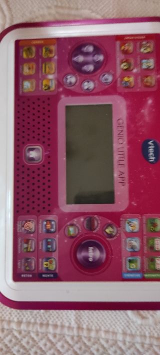 Portátil y tablet Vtech Genio Little App en color rosa. Un dispositivo interactivo para aprender y jugar. Ordenador infantil Educativo para niños + 4años. 80 actividades que enseñan letras, inglés, matemáticas, ciencias. - Pantalla LCD. - Teclado QWERTY. - Botones de navegación y selección.