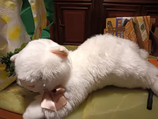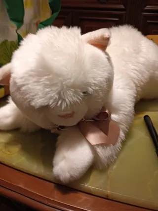 Precioso peluche de gatito blanco, suave y tierno. Ideal para coleccionar o regalar. - Color blanco. - Lazo rosa en el cuello. - Material de felpa.