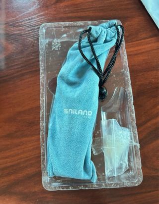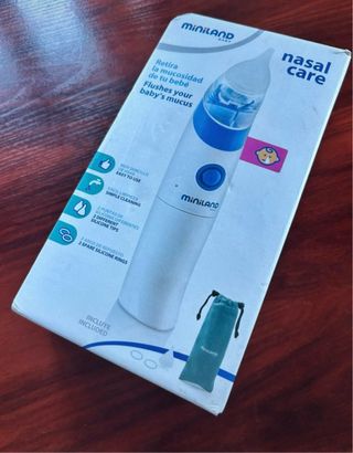 Aspirador nasal eléctrico Miniland Baby para el cuidado nasal de tu bebé. - Muy sencillo de usar. - Fácil limpieza. - Incluye 2 puntas de silicona diferentes. - Incluye 2 aros de repuesto de silicona. - Incluye bolsa de almacenamiento. NUNCA USADO porque me regalaron otro de otro marca