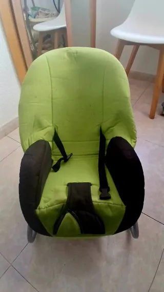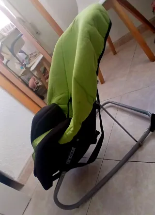 Silla de bebé acolchada en color verde y negro. Cuenta con un sistema de arnés de seguridad. - Asiento y respaldo acolchados. - Arnés de seguridad de 5 puntos. - Funda extraíble para lavado. - Cuenta con varias posiciones.