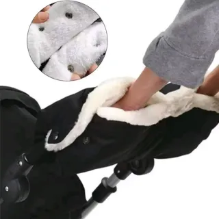 Manoplas forradas de pelo para cochecito de bebé, ideales para mantener las manos calientes en invierno. - Color negro exterior. - Forro interior de pelo blanco. - Cierre con botones a presión. - No se hacen envíos.