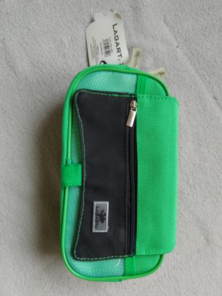 Completamente nuevo Estuche escolar de la marca LAGART® en color verde, con tres compartimentos para organizar tus materiales. - Diseño moderno y funcional. - Cremallera plateada. - Pequeño bolsillo frontal con cremallera. - Logo de la marca en la parte frontal.