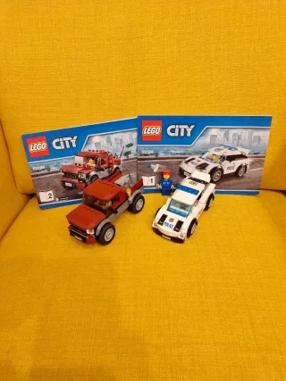 Set de construcción Lego City 60128. - Incluye un coche de policía y una grúa. - Viene con dos figuras de policía.