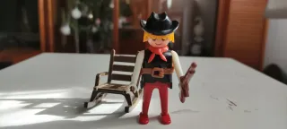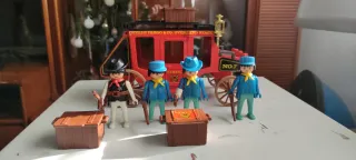 Lote de figuras y accesorios de Playmobil de la temática del Oeste. Incluye: - Sheriff primera generación 1975 ref 3341 - Carreta 1976 ref 3243 - Diligencia y varios Playmobil primeras generaciones. - 20 caballos, 4 vacas y vallas - Otros Playmobil y varios accesorios Ver perfil para más lotes y productos