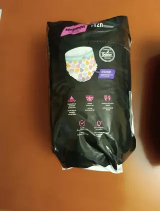 Se venden tres paquetes de bragapañales Ninjamas. - Protección discreta hasta 12 horas. - Talla 4-7 años. - Total de pañales: 30 unidades