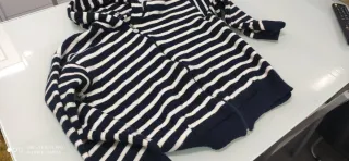 Jersey de rayas estilo marinero para niño. - Diseño de rayas horizontales en azul marino y blanco. - Tejido de punto. - Talla para niños de 10 a 12 años.