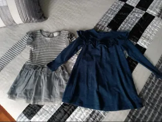 Conjunto de ropa para niña. 2 vestidos, 1 pichi y 2 camisas (1 con botón en la manga or si se quiere recoger). Talla 24-36 meses