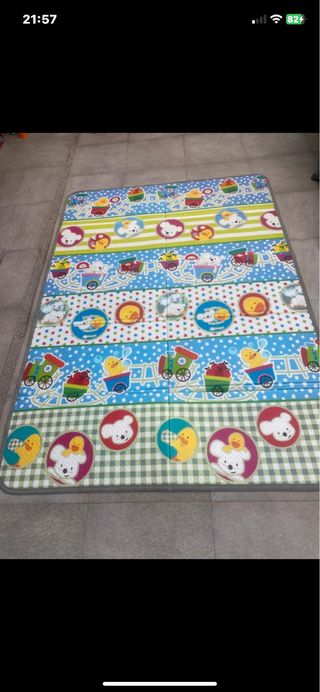 Manta de juegos con un divertido diseño infantil, perfecta para que los más pequeños se diviertan. Incluye una bolsa de transporte. - Diseño con dibujos de animales y vallas. - Colores vivos y alegres. - Material suave y cómodo.