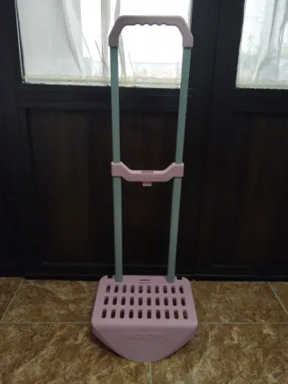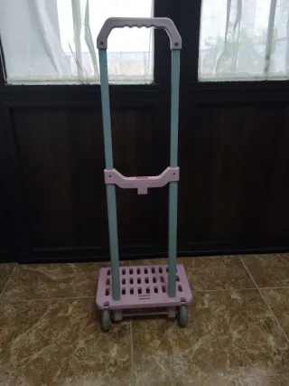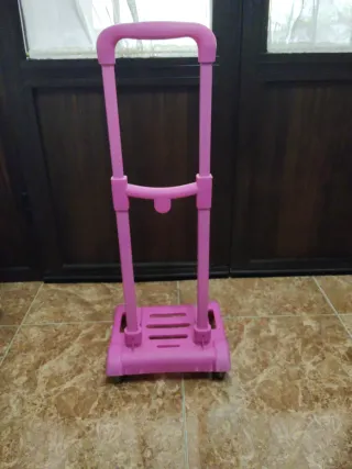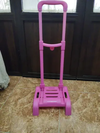 Carro de transporte en color rosa. - Estructura de plástico resistente. - Mango extensible. - Base con ruedas para facilitar el movimiento.
