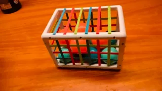 Juego de encaje de formas geométricas para bebés. Fomenta el desarrollo de la motricidad fina y el reconocimiento de colores y formas. - Incluye varias piezas de diferentes colores y formas. - Estructura de plástico blanco con varillas elásticas de colores.