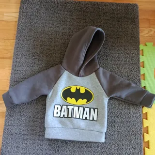 Sudadera con capucha para bebé con el logo de Batman. - Color gris y mangas grises oscuras. - Estampado frontal de Batman y texto BATMAN.