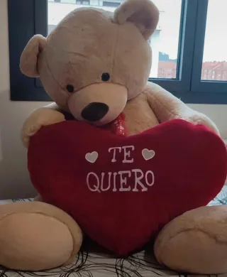 Adorable peluche gigante con forma de corazón. - Color rojo intenso. - Mensaje Te quiero bordado en blanco. - Suave al tacto. 75x75x60