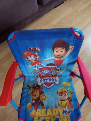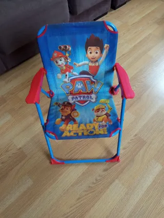 Silla de playa infantil con diseño de la Patrulla Canina. Perfecta para los más pequeños. - Estructura de metal. - Tejido resistente con estampado. - Brazos de plástico rojo.