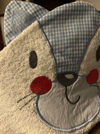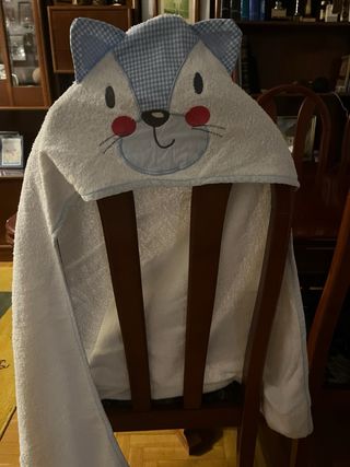 Toalla con capucha para bebé, ideal para secar después del baño. Su diseño divertido con forma de oso hará las delicias de los más pequeños. - Material suave y absorbente. - Capucha incorporada. - Detalles bordados.