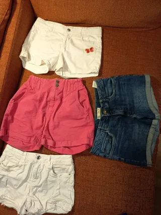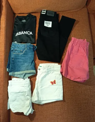 Lote de ropa para niña de 13 - 14 años. - Camiseta negra deportiva. - 3 Pantalones vaqueros cortos Zara - Pantalón vaquero corto blanco Benetton - pantalón vaquero largo negro Jack & Jones sin estrenar, con la etiqueta