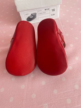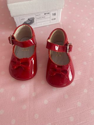 Preciosos zapatos de charol para bebé en color rojo. - Talla 16. - Cierre con hebilla. - Detalle de lazo. - Diseño clásico y elegante.