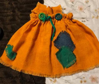 Disfraz de espantapájaros para niña, ideal para fiestas o Halloween. - Talla 4-6 años. - Diseño con parches y botones. - Material tipo tela de saco.
