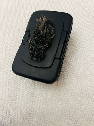 Práctico porta toallitas para bebé con un bonito diseño. - Decoración de rosas en relieve. - Color negro mate.