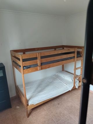Se vende por 140 sola o 200 con colchones. Se encuentra montada actualmente. Litera de madera de IKEA, ideal para habitaciones infantiles o juveniles. Estructura robusta y diseño clásico. - Material: Madera. - Color: Natural.