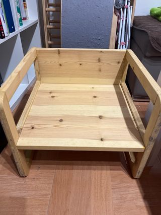 Mueble infantil de madera, versátil para usar como mesa o silla. - Diseño sencillo y funcional. - Material de madera clara.