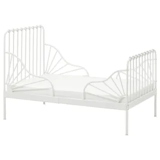 Cama infantil extensible de IKEA, modelo MINNEN. Perfecta para adaptarse al crecimiento de los más pequeños. - Estructura de metal blanco. - Diseño moderno y funcional. - Incluye somier. Se encuentra desmontada. Un cabezal, los pies, 4 laterales, 2 barras extensibles, el somier de láminas, colchón y dos prolongaciones. No hago envíos.
